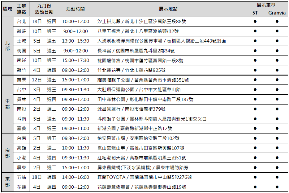 HINO 5噸、TOYOTA Granvia戶外微展車全台同步實施中,歡迎各地貴賓蒞臨鑑賞。