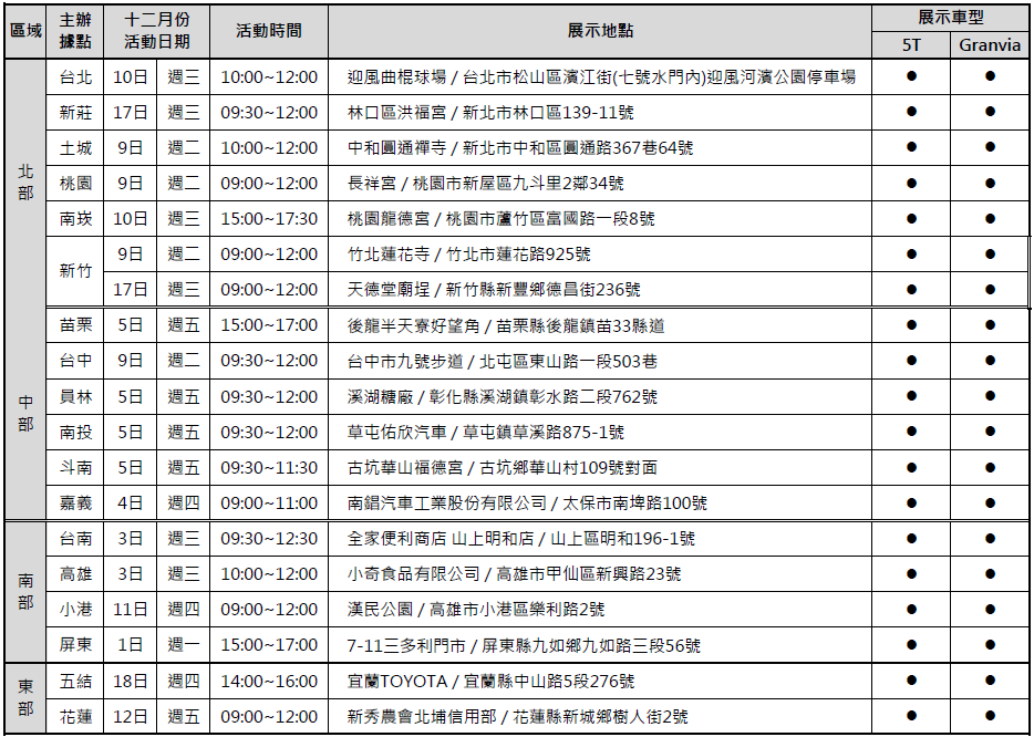 HINO 5噸、TOYOTA Granvia戶外微展車全台同步實施中,歡迎各地貴賓蒞臨鑑賞。