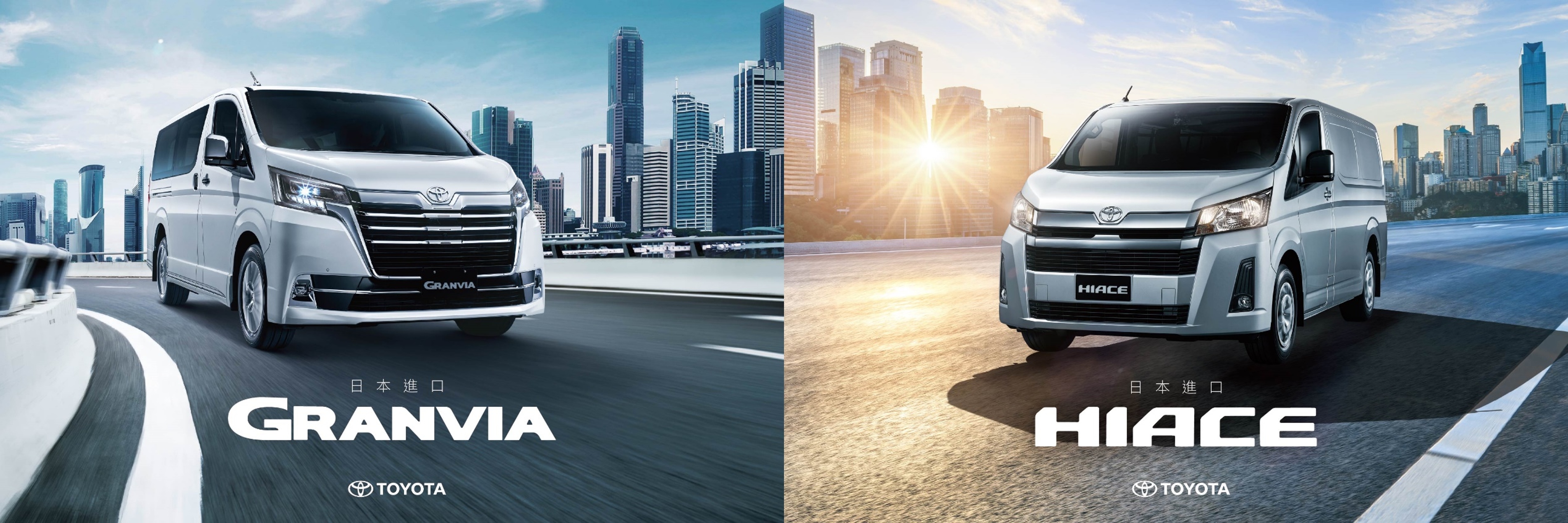 TOYOTA GRANVIA以霸氣鍍鉻飾條、大器頭燈與高質感座艙,展現豪華商旅的非凡格局。配置六人、八人、九人座車型選擇,滿足多元用車需求;TOYOTA HIACE配備對開式尾門及上掀式尾門兩種車型,滿足不同地形環境裝卸貨物需求。此外,具備傑出載重實力,可載重1.1噸以上,廣受台灣消費者喜愛。TOYOTA GRANVIA、HIACE皆搭載2.8L 1GD-FTV直列4缸柴油渦輪增壓引擎,加上6速手自排變速箱,創造暢快的駕馭感受。