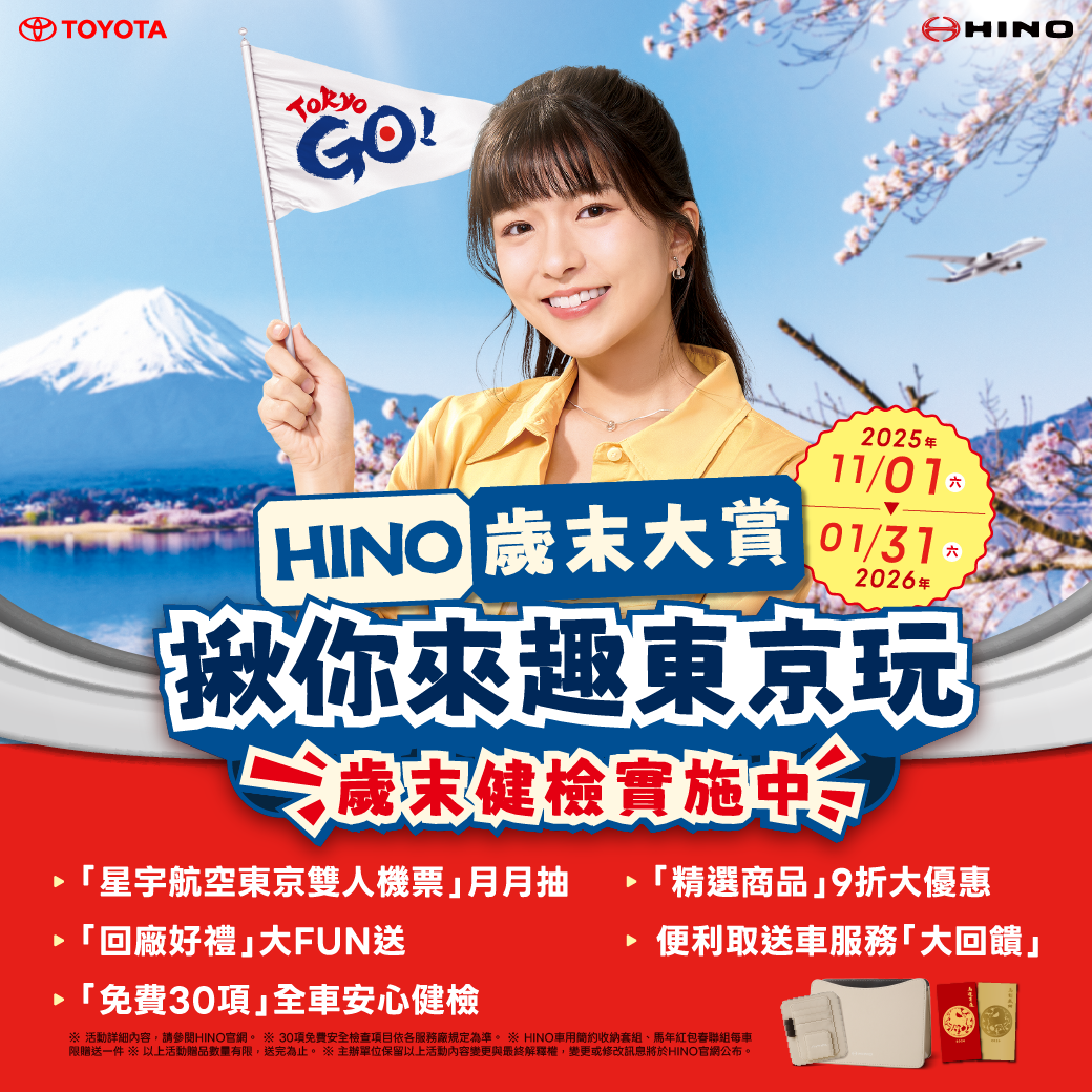 HINO商用車歲末大賞,回廠年終安心健檢、揪你來趣東京玩